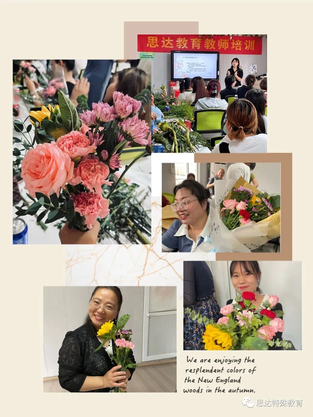 思达特教的老师们在唐山市插花艺术协会老师的带领下进行艺术插花,老师们尽情的享受着这美好的过程,亲手制作一束专属于自己的花束。